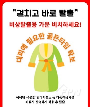 10일 소방서에 따르면 ‘비상용 가운’은 목욕탕, 찜질방 등에서 화재 발생 시 옷을 챙기다 연기에 질식하거나 불에 타 인명피해가 발생하는 경우를 방지하기 위한 가운이다.