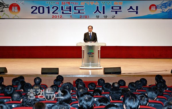 청양군은 2일 임진년 새해 아침에 이석화 청양군수를 비롯한 전직원이 함께한 시무식을 통해 다시 뛰는 청양을 위한 첫 발을 힘차게 내딛었다.