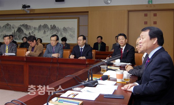 ▲ 염홍철 대전시장이 확대간부회의에서 당부의 말을 전하고 있다.
