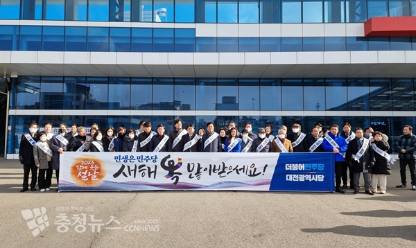 [충청뉴스 이성현 기자] 더불어민주당 대전시당이 20일 설 명절을 앞두고 대전역 앞에서 시민들에게 명절 인사를 건넸다.