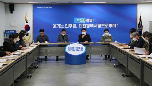 25일 오후 4시 대전시당에서 열린 의원 총회에는 황운하 시당위원장과 장종태 정책위원장, 황인호 의정활동지원단장, 박정현 민생안정대책TF단장을 비롯해 민주당 소속 시·구의원 33명이 참석했다.