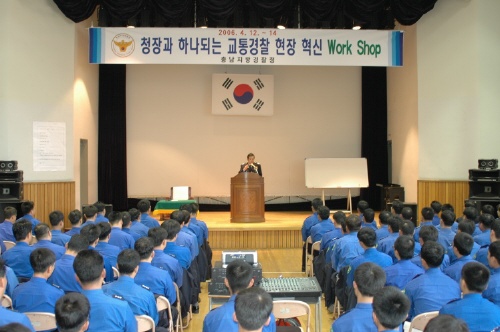 충남지방경찰청(청장 김정식)은 국민생활 안전확보 100일계획 목표달성과 수평적 조직문화 정착을 위해 "청장과 함께 하는 현장혁신 워크숍"을 개최하였다. 이날 수렴된 의견을 정책에 반영하고 경찰서간 우수 직무사례를 벤치마킹 하는 등 국민의 눈높이에 맞는 업무개선과 대민봉사 수준을 향상시키기는데 활용된다.