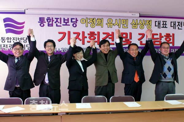 통합진보당충남도당은 "다가올 4.11 총선에 반드시 1석의 의석을 확보할 것"이라며 "통합진보당의 원내교섭단체 달성은 진보의 새시대를 열어제낄 원동력이자, 12월 대선에서 진보적 정권교체라는 국민적 열망을 담아낼 초석이될 것"이라고 밝혔다.