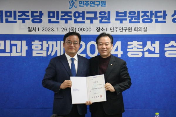 2일 민주연구원에 따르면 최근 이사회를 열고 한태선 신임 민주연구원 부원장 선임 안건을 의결했고, 지난달 26일 부원장단 상견례 자리에서 정태호 민주연구원장이 임명장을 전달했다.