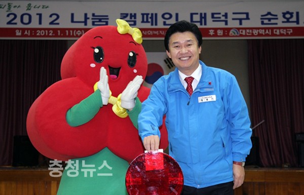 사회적 약자에 대한 배려와 지원을 위해 각종 구 단위 행사시 나눔과 기부문화 확산 캠페인을 펼치고 있는 대덕구(구청장 정용기)와 사회복지공동모금회가 11일 대덕구청 대강당에서 ‘2012 순회 모금 캠페인’을 갖고 나눔 문화 확산에 앞장섰다.