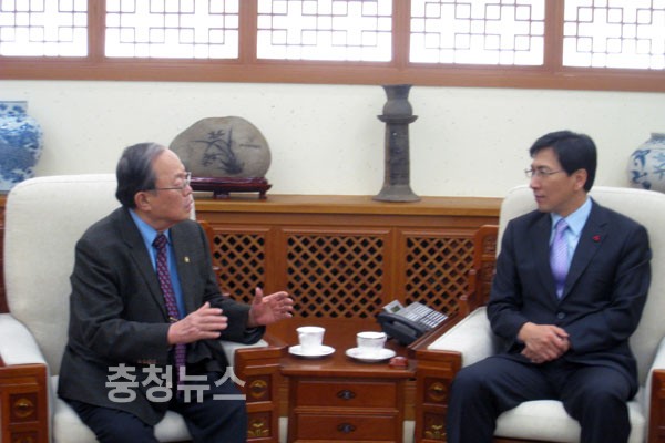 강용식 세종시장 예비후보는 11일 오후 충남도청에서 안희정 충남도지사를 만나 세종시 발전을 위해 도 차원에서의 적극적인 지원을 당부했다.