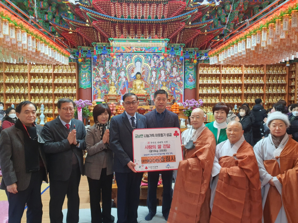 혜진 스님은 “신도들께서 정성껏 모아주신 성금으로 올해도 백미를 기탁할 수 있게 되어 기쁘다”라며 “추운 겨울을 외롭고 쓸쓸하게 보내고 있을 우리 지역 어려운 이웃에게 신도들의 따뜻한 마음을 전해달라”고 밝혔다.