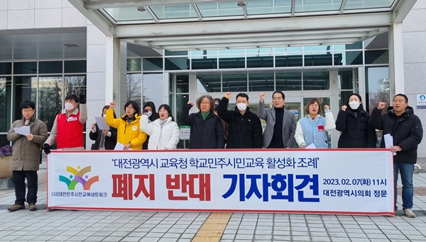 최근 전교조 대전지부와 대전참여자치시민연대에 이어 대전민주시민교육네트워크도 폐지에 반대하면서다.