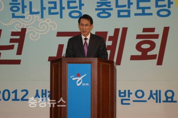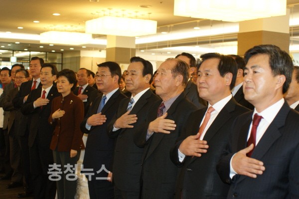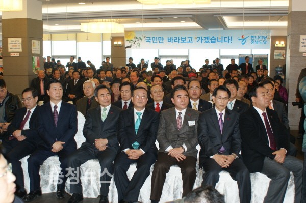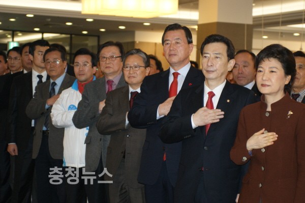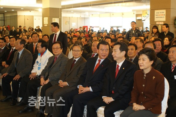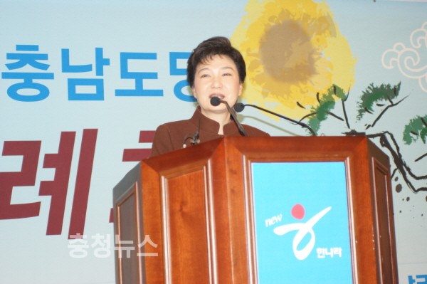 축사에 나선 박근혜 위원장은 “올해는 충남에 새로운 기회의 문이 열리는 중요한 해이다. 오는 7.1일 역사적인 세종시가 공식 출범하고 과학벨트 조성 사업도 본격 추진된다”며 “이사업들 모두 한나라당이 약속드렸던 사업들이다. 중간에 우여곡절을 겪었지만 그 약속이 실천되는 뜻깊은 순간을 맞고 있다”고 말했다.