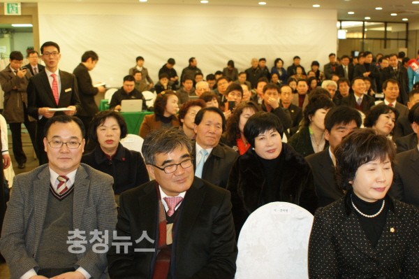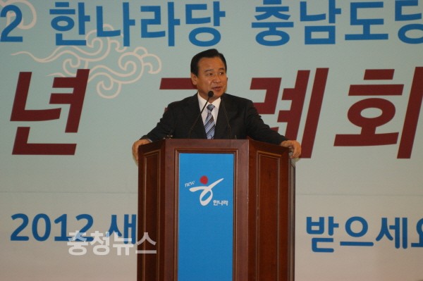 이어 박성효 前 최고위원은 “박근혜가 충청도를 어느 지역보다 사랑하고, 충청도민도 어느 지역보다 박근혜를 사랑한다”며 “금년은 용띠 해이다. 김호연위원장이 호연지기를 키워서 4.11총선에서 용의 그림에 눈을 그려넣는 화룡점정을 하고, 12월에 무궁화 동산에서 여의주 물고 용이 승천할 수 있도록 다같이 노력하자”고 의미심장한 발언과 함께 도종완 시인의 ‘담쟁이’라는 시를 읊었다.