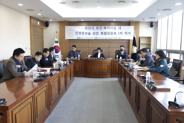 [충청뉴스 박동혁 기자] 충남 천안시의회 ‘천안시 보건·복지시설 내 인권증진을 위한 특별위원회’가 8일 1차 회의를 열고 본격 활동에 돌입했다.