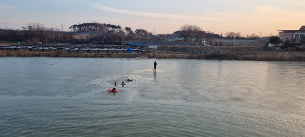 충남소방본부, 저수지 빙판 위에서 놀다 물에 빠진 중학생들 무사히 구조