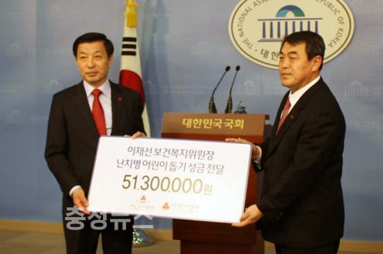 이 위원장실에 따르면 이 위원장은 지난해 말 국회에서 ‘복지’를 내용으로 하는 ‘시대공감’이라는 책을 출간하면서 판매금 중 정산해 얻은 수익금 5,130만원을 18일 난치병어린이돕기에 써달라며 사회공동모금회에 기부했다는 것.