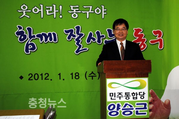 민주통합당 양승근 예비후보는 18일 동구 신흥동에 위치한 선거사무실에서 기자회견을 열고 본격적인 총선행보에 나섰다.