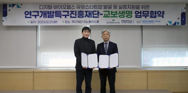 특구재단에서 진행된 이번 업무 협약식에는 특구재단 홍순규 과학벨트지원본부장, 교보생명 이 철 DT지원담당 등 관계자들이 참석했다.