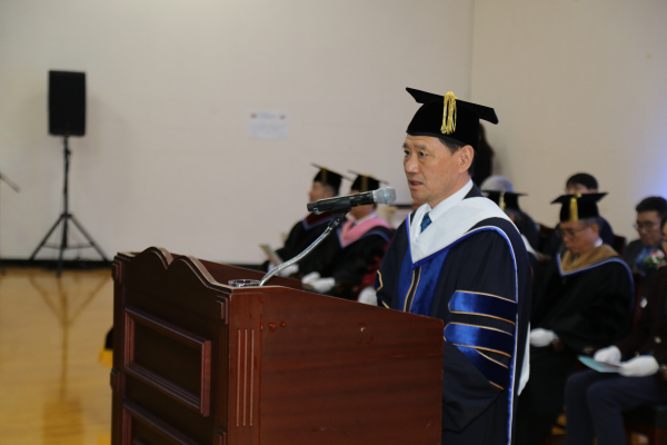 김수복 총장은 “독립운동가가 설립한 단국대에 입학한 여러분을 진심으로 환영한다”며 “대학 생활은 미래와 꿈을 설계하고 꿈을 이루기 위해 노력하는 과정이니만큼 입학 후 다양한 활동을 통해 여러분의 꿈에 다가가길 바란다”고 격려했다.
