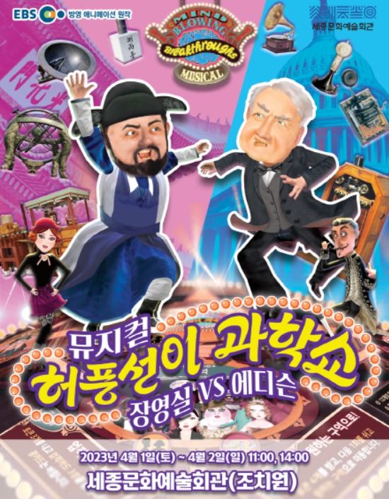 [충청뉴스 최형순 기자] 세종시문화재단(대표이사 김종률)은 "관객이 직접 과학기술을 체험할 수 있는 뮤지컬 '허풍선이 과학쇼 장영실 VS 에디슨'을 선보인다"고 28일 밝혔다.