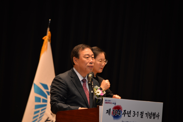 최민호 세종특별자치시장은 1일 시청 여민실에서 열린 ‘제104주년 3‧1절 기념행사’에서 대한민국의 역사를 새롭게 여는 미래전략수도 세종 완성이야말로 우리에게 주어진 소명이라고 강조하고 시민의 동참을 당부했다.