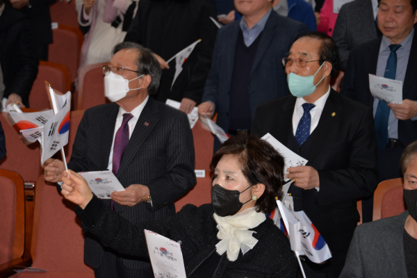 이어 국민의례를 시작으로 김정훈 광복회세종시지부 운영위원의 독립선언서 낭독와 최민호 시장의 기념사, 3․1절 노래제창, 독립유공자 유족대표 임용순 님의 선창에 따른 만세삼창 순으로 진행됐다.