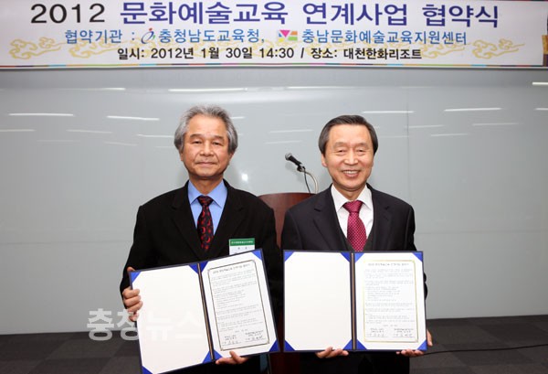 충남교육청(교육감 김종성)은 30일 오후 보령에서 학교 문화예술교육의 질을 높이고 원활한 지원체계 구축을 위해 충남문화예술교육지원센터(센터장 김영천)와 문화예술교육 지원 협약식을 관계자 150여명이 참석한 가운데 펼쳐졌다.