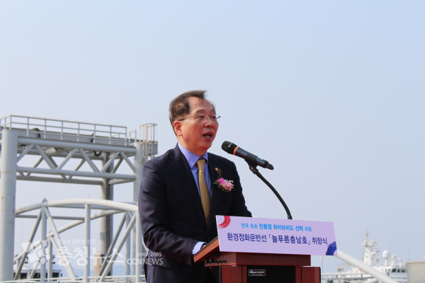 [충청뉴스 권상재 기자] 충남도는 ‘서해바다를 늘 푸르게 지켜 나아가겠다’는 의지를 담은 국내 1호 친환경 하이브리드 선박인 ‘늘푸른충남호’의 취항식을 개최했다고 7일 밝혔다.