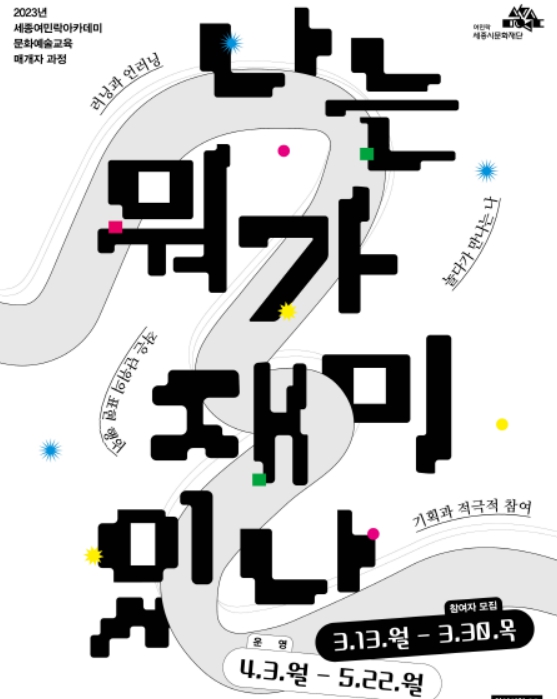 세부내용은 세종시문화재단 누리집(www.sjcf.or.kr)에서 확인할 수 있으며, 관련 문의는 문화예술교육팀(044-850-0522)으로 하면 된다.