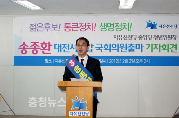자유선진당 송종환 중앙당 청년위원장은 “12년간 뚫지 못한 박병석 의원의 아성을 무너뜨리겠다”고 야심찬 포부를 밝히며 서구 갑 출마를 선언했다.