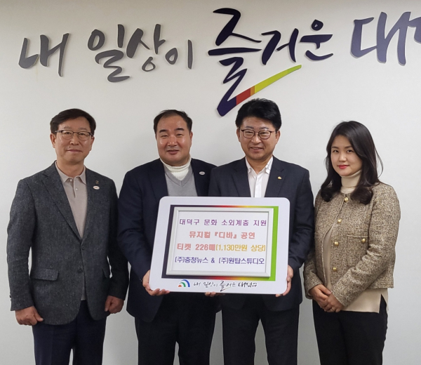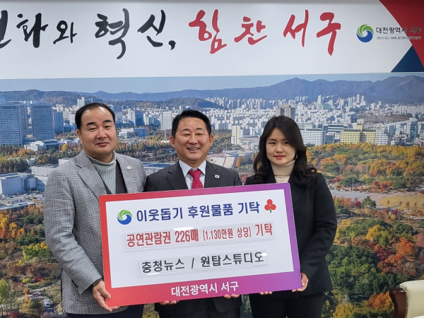 김거수 충청뉴스 대표는 지난 15일, 16일 대덕구청과 서구청을 방문해 문화 소외계층에게 티켓을 전달해달라며 총 452장을 기부했다.