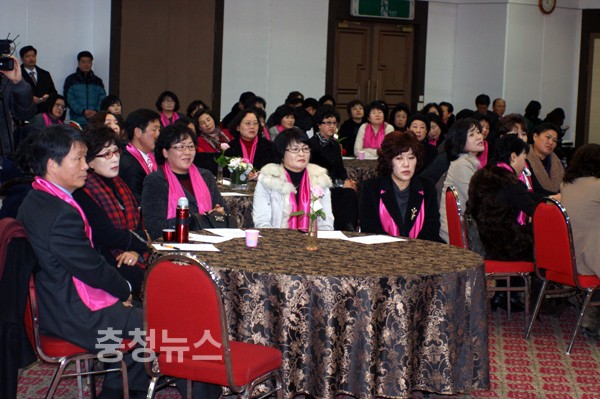 ▲ 심대평 대표가 '뉴선진비전 여성위원회 출범식'에 참석해 인사말을 하고 있다.