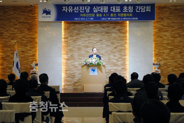 ▲ 심대평 대표가 '선진당 4.11 총선지원협의회 결의대회'에서 축사를 하고 있다.