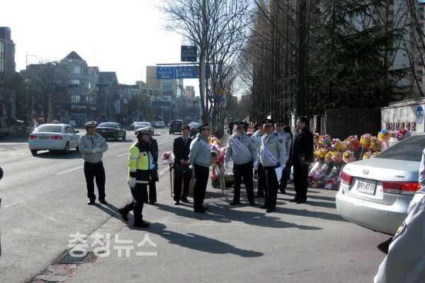 대전둔산경찰서는 7일 졸업식을 하는 충남고등학교 정문에서 협력단체 및 자율방범대원 등 75명이 참석한 가운데 학교폭력 예방 캠페인 실시 및 전단지를 배부했다.