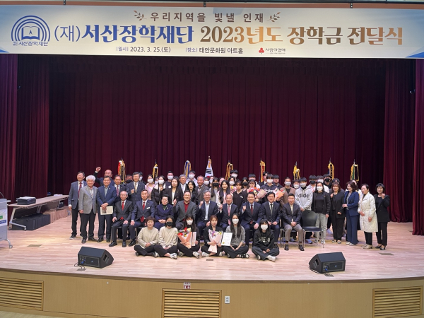 [충청뉴스 김정식 기자] (재)서산장학재단(이사장 조규선)은 지난 25일 태안문화원에서 ‘2023년도 우리지역을 빛낼 인재 장학금 전달식’을 개최했다고 26일 밝혔다.