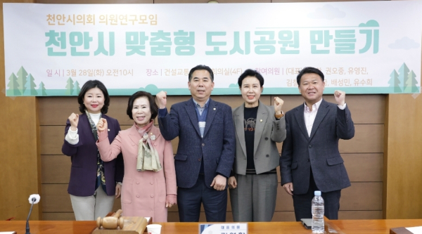 [충청뉴스 박동혁 기자] 충남 천안시의회는 ‘천안시 맞춤형 도시공원 만들기 연구모임(김영한 대표의원, 권오중·김철환·김행금·배성민·유수희·유영진 의원)이 28일 건설교통위원회 회의실에서 1차 회의를 개최했다고 밝혔다.