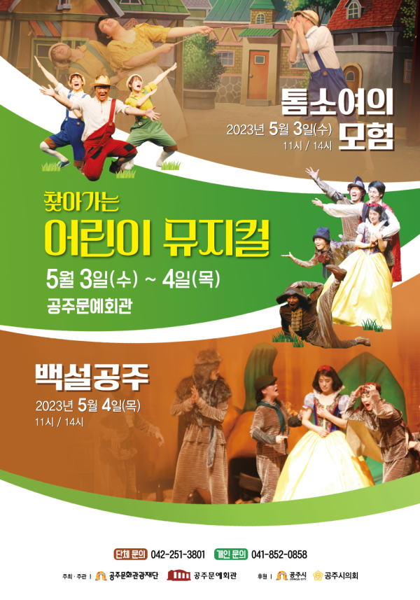 [충청뉴스 공주 = 조홍기 기자] (재)공주문화관광재단은 2023 <찾아가는 어린이 뮤지컬>을 5월 3일(수)부터 5월 4일(목)까지 이틀간 공주문예회관에서 개최한다.