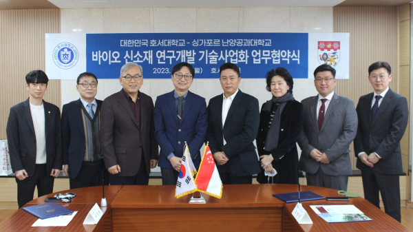 이종원 호서대 학사부총장은 “이번 업무협약을 통해 학내 연구 공간 제공 및 초기 연구지원을 아끼지 않을 계획"이라며 "난양공과대학 연구진과 바이오 신소재 분야의 다양한 학술교류와 산학협력 프로젝트를 추진할 계획”이라고 밝혔다.