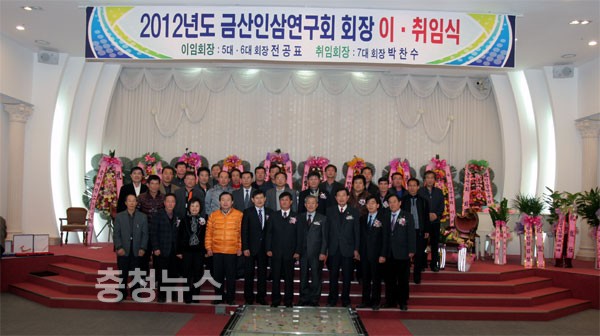 금산인삼연구회장 이·취임식이 13일 삼지원 웨딩홀에서 박동철 금산군수, 내외 귀빈, 농촌지도자 회원 등 200여명이 참석한 가운데 개최됐다.