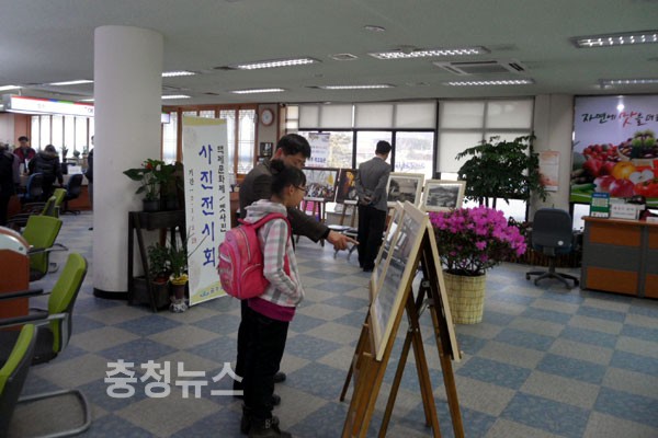 ▲ 공주시청 민원실에 개최된 사진전을 시민들이 감상하고 있다.