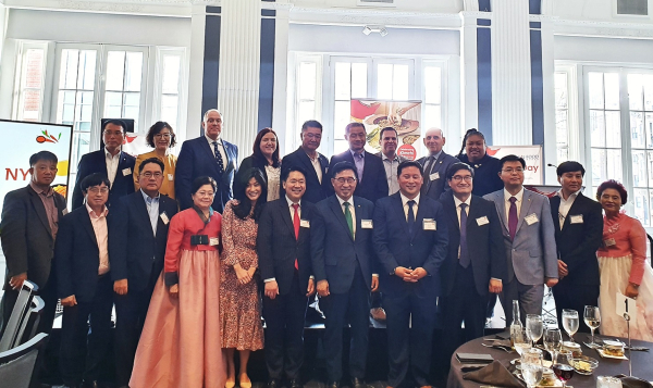 한국농수산식품유통공사 김춘진 사장(1열 우측 6번째), 론 킴 뉴욕주 하원의원(1열 우측 5번째)
