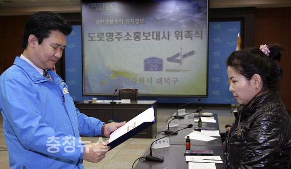 대전 대덕구(구청장 정용기)는 20일 구청 중회의실에서 구정에 관심이 많은 주민 중 전문직종사자를 도로명주소 홍보대사로 위촉하고, 2014년 도로명주소 전면사용에 따른 주민밀착형 홍보에 나설 방침이다.