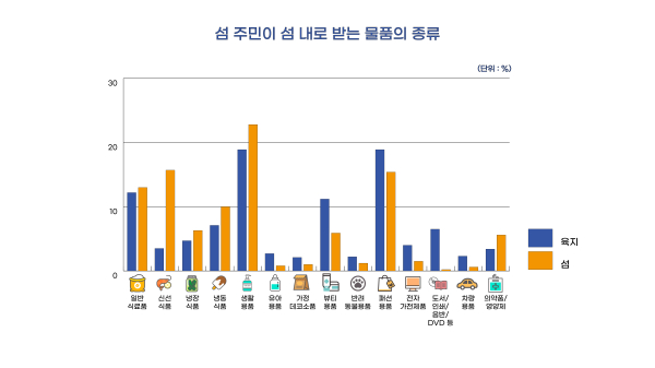 그 결과, ▲섬 내로 반입되는 물품은 생활필수품 ▲섬 외로 보내는 물품은 지역 특산물로 ▲택배 서비스는 섬 주민의 정주 여건과 소득 창출에 크게 영향을 미치는 것으로 나타났다.