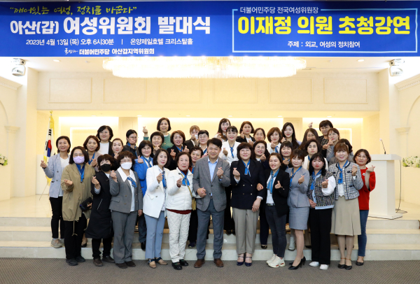 아산갑 지역위원회는 지난 14일 온양제일호텔에서 복기왕 충남도당 위원장을 비롯해 김은나 충남도당 여성위원장과 각 지역 여성위원장, 안소연 아산갑 여성위원장, 김희영 아산시의장, 홍성표·명노봉·천철호 아산시의원, 당원 등 약 150여 명이 참석한 가운데 여성위원회 발대식을 개최했다.