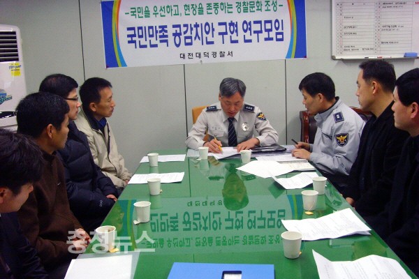 ▲ 주현종 대덕경찰서장이 현장직원 10여명과 연구 모임을 가졌다.