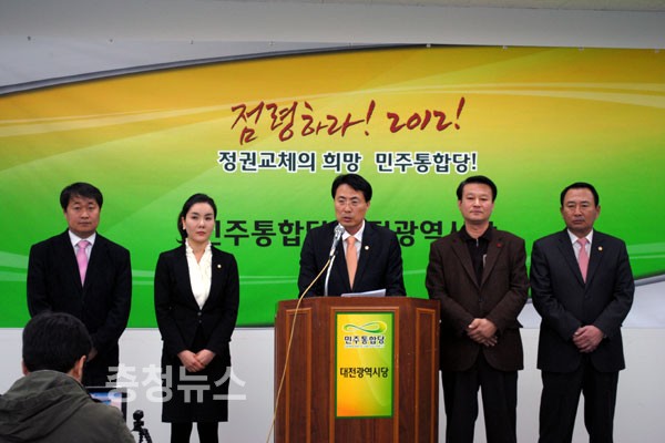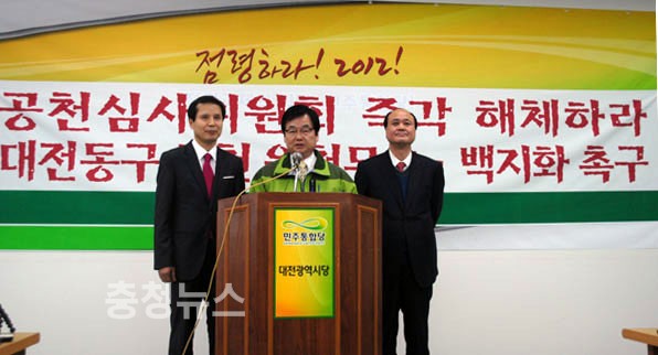 민주통합당 동구지역 예비후보들과 유성구의원들은은 28일 오후 대전시당에서 기자회견을 열고 “2월 24일은 공천학살의 날”, “공천결과 백지화 촉구”등을 외치며 지난 24일 발표된 공천결과에 대해 강력히 비판하고 나섰다.