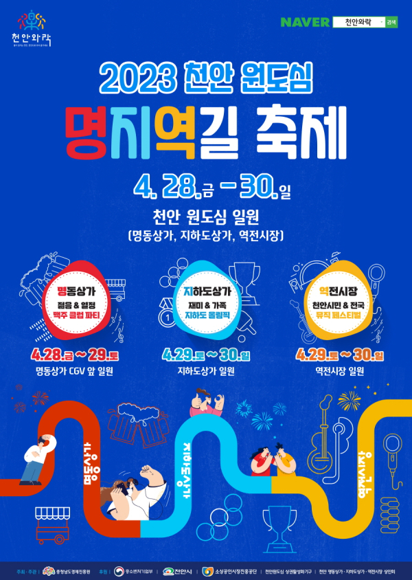 [충청뉴스 박동혁 기자] 충남경제진흥원은 천안시와 오는 28일부터 30일까지 천안명동상가, 지하도상가, 역전시장 등 원도심 일대에서 ‘2023 천안 원도심 명지역길 축제’를 개최한다고 24일 밝혔다.
