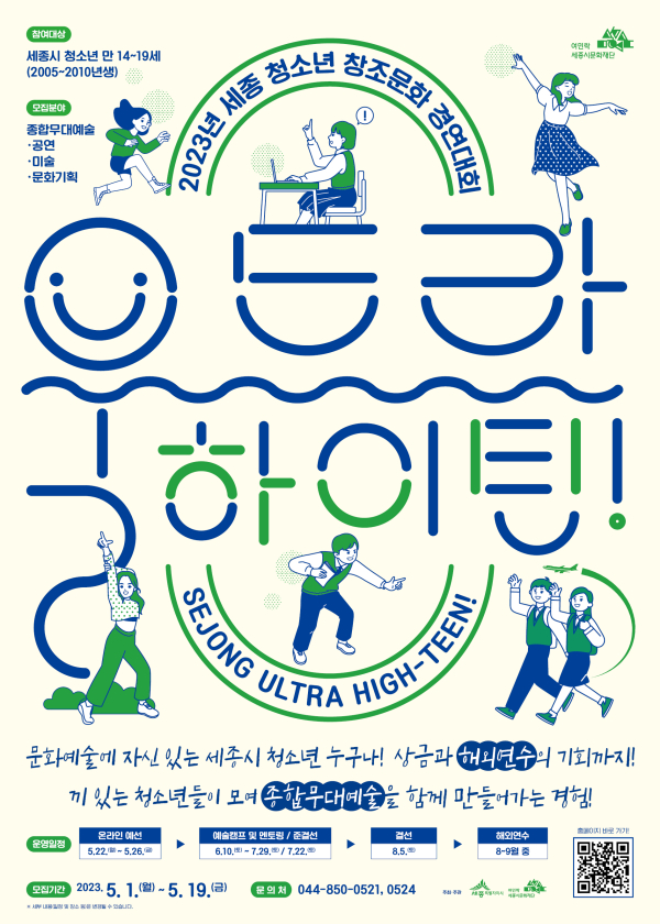 [충청뉴스 최형순 기자] 세종시문화재단(대표이사 김종률)은 종합무대 예술을 펼칠 ‘2023년 청소년 창조문화 경연대회’ 참가자를 내달 1일부터 모집한다.