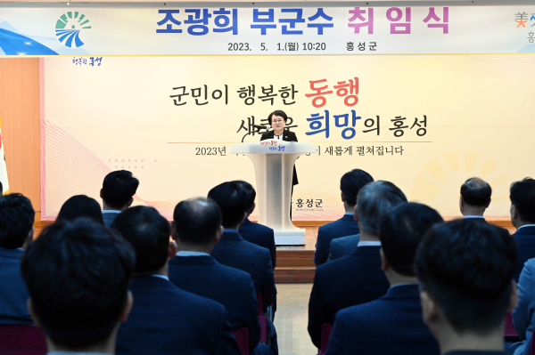 조 부군수는 취임사를 통해 “민선 8기 출범 후 1년이 지나지 않은 시점에 홍성군 부군수로 근무하게 됨을 무한한 영광으로 생각하며, 내포신도시 미래신산업 국가산업단지 조성, 혁신도시 공공기관 유치, 종합병원 건립 등 지역발전을 선도할 주요 현안 실현을 위해 한 발 더 뛰겠다”라고 포부를 밝혔다.