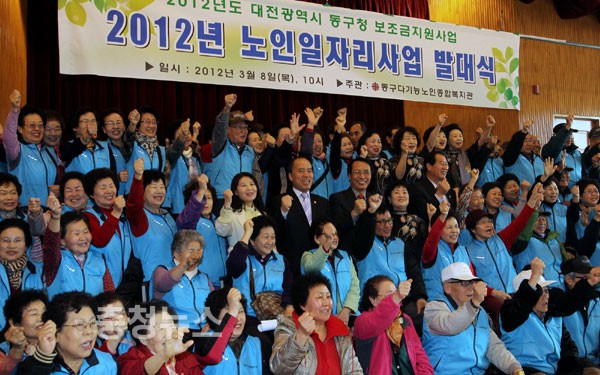 대전 동구(구청장 한현택)는 8일 동구다기능노인종합복지관에서 저소득 노인들의 일자리 창출을 통해 소득기회 제공을 위한 ‘2012년 노인일자리사업 발대식’을 개최했다.