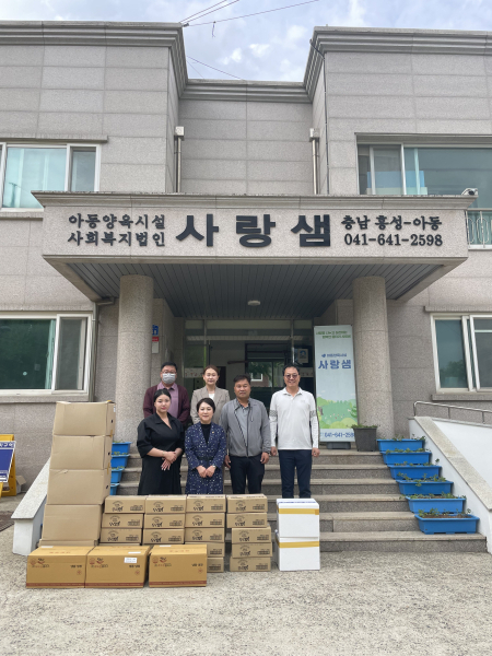 또한 사랑샘에 천수푸드(대표 차대식)는 ▲홍성한돈 왕구이 30개 ▲사골육수 108개를 전달하였고 홍성낙협(조합장 최기생)에서 ▲요구르트 100개를 제공하면서 관내 축산관련 기관․단체가 가정의 달을 맞이하여 아이들에게 균형 잡힌 식사를 제공할 수 있도록 지역사회에 나눔의 손길을 더했다.
