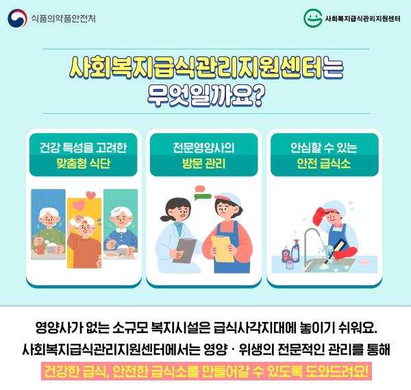 김기봉 사회복지급식관리지원센터장은 “소규모 사회복지시설의 경우 영양사가 없어 영양 관리가 미흡할 수 있다”며 “센터 운영을 통해 균형 잡힌 급식 제공을 돕고, 취약계층의 건강 증진과 삶의 질 향상에 힘쓰겠다”고 말했다.