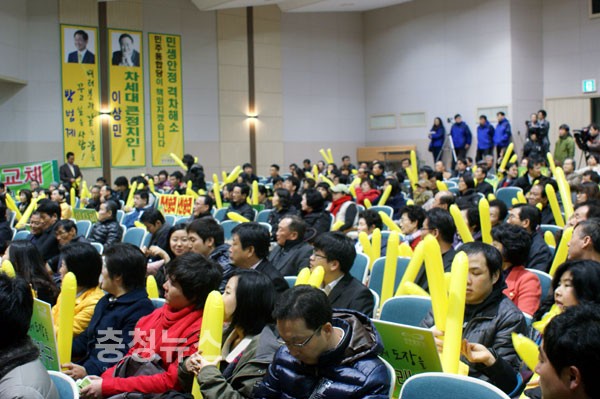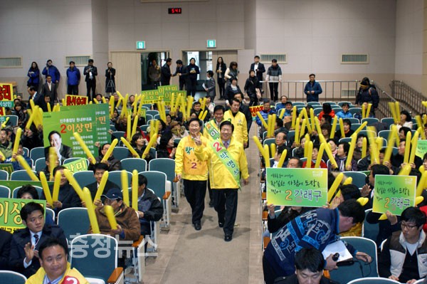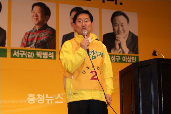 그러면서 이번에도 충청도가 더 이상 권력의 변두리에 설수 없다, 국민들이 대전,충남에서 2번 민주당을 선택하면 바로 충청인이 주인이 되는 정당이 된다. 무능한 새누리당 이명박 정권을 심판과 존재감없는 취업정당 선진당은 이젠 끝을 내야한다고 목소리를 높였다.